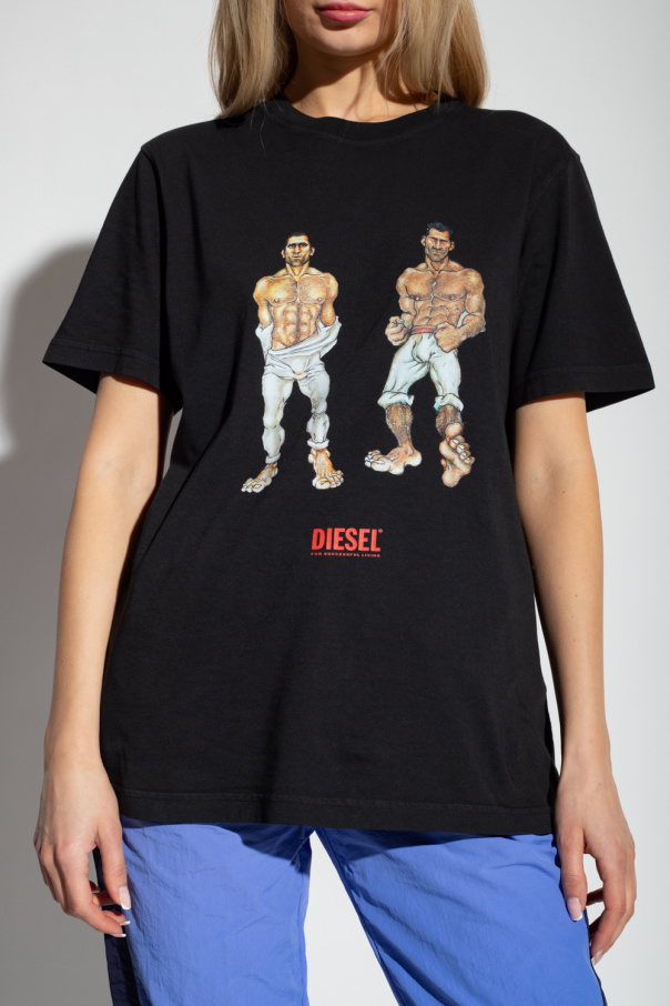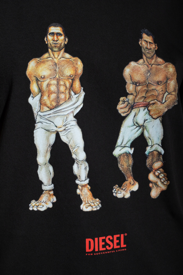 Black ‘PR-T-JUST-P6’ crewneck T-shirt from Diesel, the AllTogether Pride capsule collection. Made of cotton in partnership with Tom of Finland Foundation (ToFF), this short sleeve design features a multicolored logo print and the capsule's patch on the back and a quote from the artist Palanca.