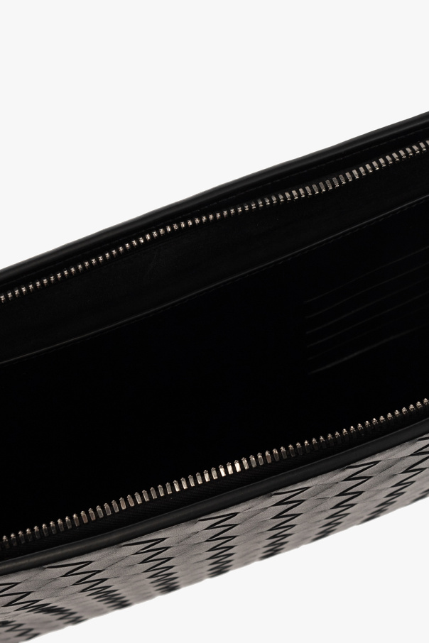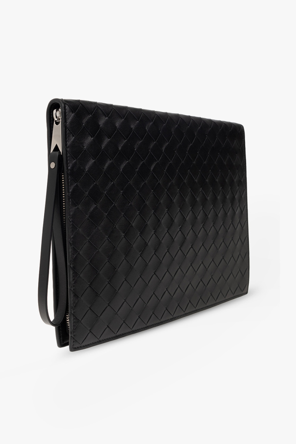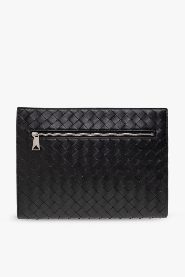 Black ‘Classic Intrecciato Medium’ document case from Bottega Veneta. Made of calf leather with the brand's signature weave, this design features a zip fastening, a zip front pocket, silver-tone metal hardware and one internal compartment with one slip pocket and six card slots.