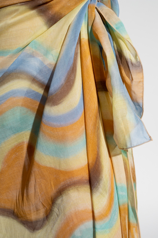 Multicoloured ‘Lamba’ shawl from Jacquemus. Crafted from a cotton and silk blend, this item features a wavy pattern with the brand's logo.