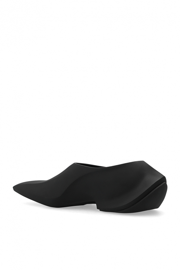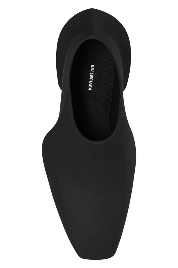 Black ‘Space’ shoes from Balenciaga. With a slip-on silhouette, this model features an innovative, lightweight, single mould form with an elongated toe and an embossed logo on the side.