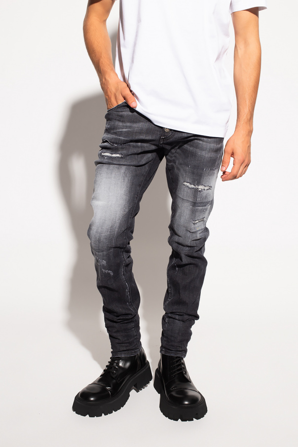 Grey ‘Cool Guy’ jeans from Dsquared2. Crafted from cotton with a faded-effect, this pair falls down with slightly tapered legs and features button fastenings and classic five pockets.