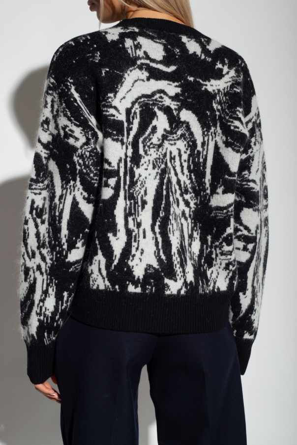 Black and white ‘SoleaGZ’ cardigan from Gestuz. Crafted from a wool blend with a relaxed fit, this style showcases an embroidered pattern, button fastenings, a V-neckline, dropped shoulders, long sleeves and elasticized edges.