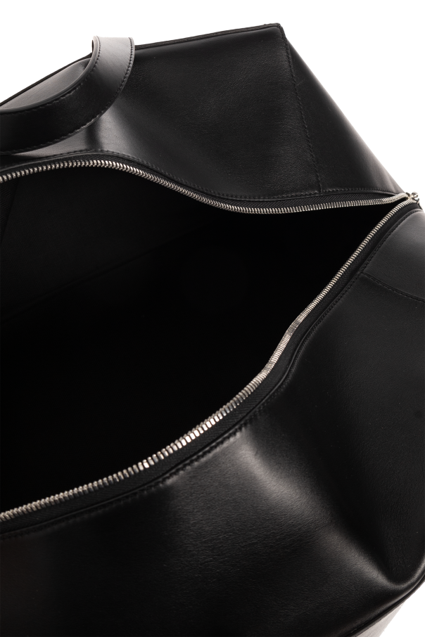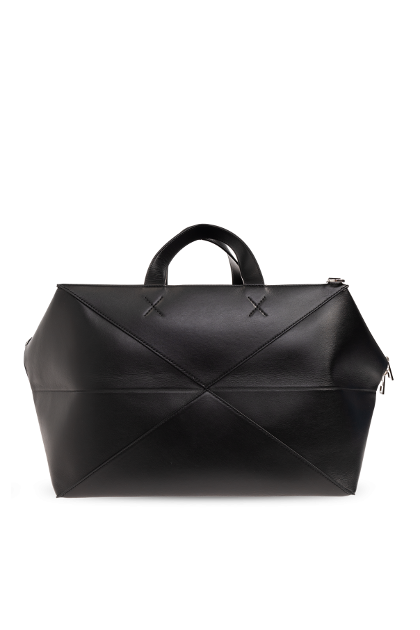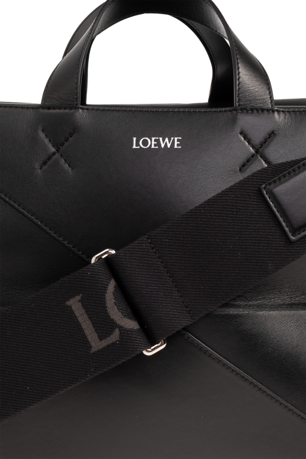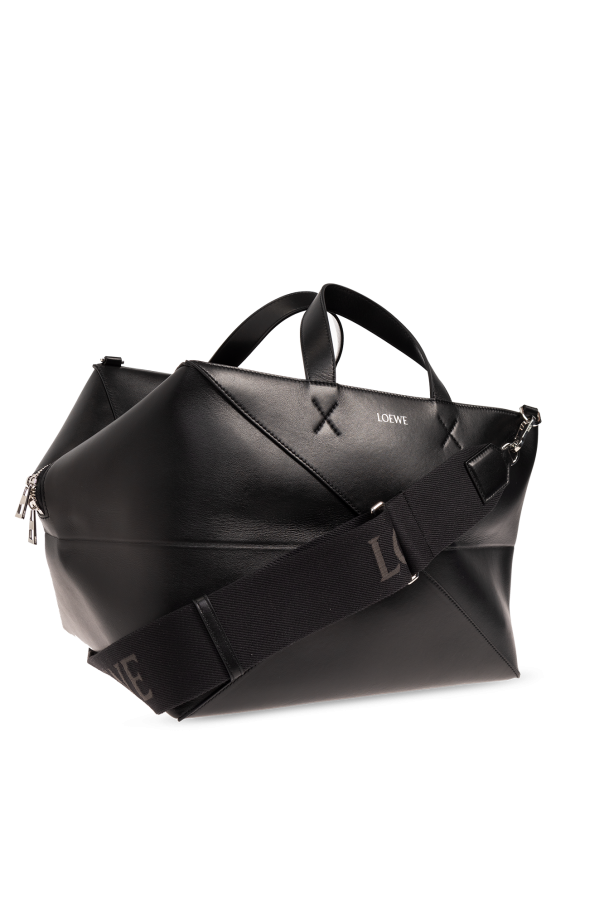 Black ‘Puzzle Fold’ shoulder bag from Loewe. Made from calf leather, this design fastens via a two-way zip and features a foldable construction with a printed logo on the front, two half-round handles, silver-tone metal hardware as well as a detachable and adjustable shoulder strap with an embroidered logo and one internal compartment with a zip pocket.