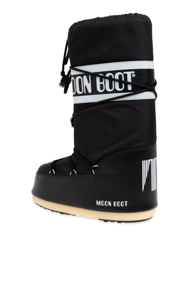 Introducing the Icon Nylon Snow Boots by Moon Boot, a harmonious blend of modernity and functionality meticulously designed for men. These exclusive boots are a paragon of style, ideal for braving the winter elements. Crafted from resilient nylon, these snow boots feature a distinctive high-profile shape that extends above the ankle. The sleek black exterior is adorned with bold white "MOON BOOT" lettering on the side panels and a logo on the back, creating a striking contrast. The full-length lacing system ensures optimal stability and comfort, accentuated by decorative tassels at the ends of the laces. The synthetic sole offers exceptional traction on snow and ice, making these boots indispensable for winter adventures. The combination of durable materials and thoughtful design elements underscores the ingenuity of Giancarlo Zanatta, whose vision from the 1970s continues to captivate the fashion-forward individuals of the 21st century. Why Choose This Product? Exclusive design from the Icon Nylon collection. High-profile shape providing superior ankle support. Durable nylon construction, resistant to harsh weather conditions. Bold, easily recognizable Moon Boot branding. Exceptional traction with a synthetic sole designed for snow and ice. Comfort and stability with a full-length lacing system.