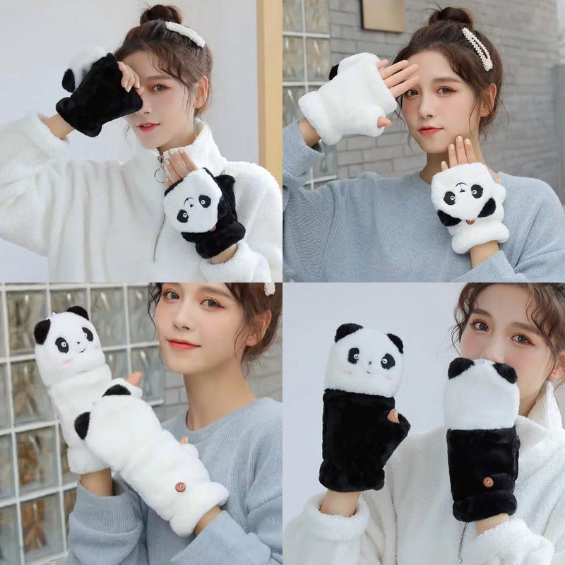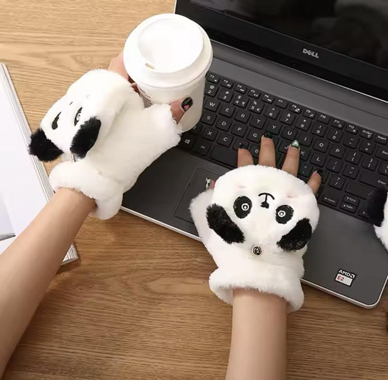 Варежки Митенки 2 в 1 теплые меховые Панда (Teddy, Тедди, медведь, мишка) -