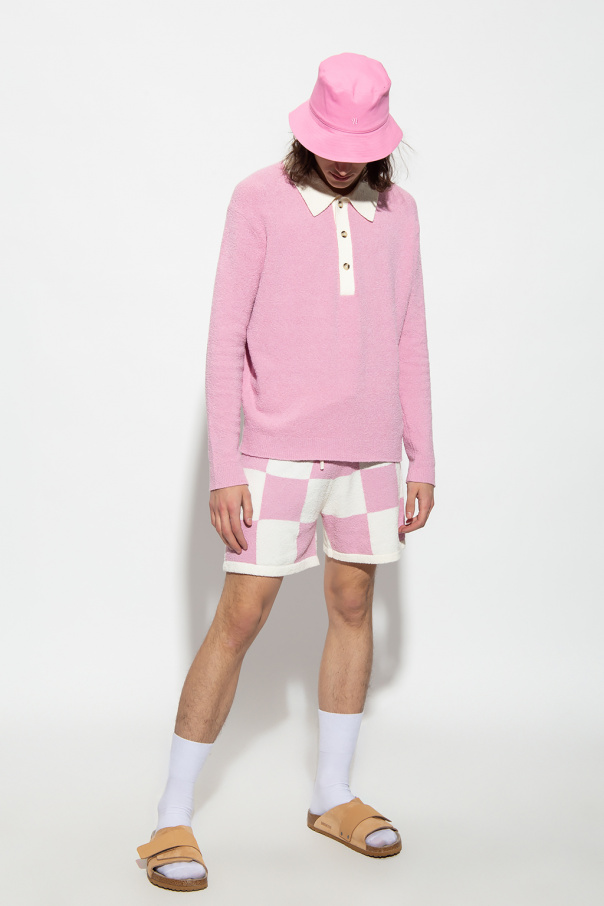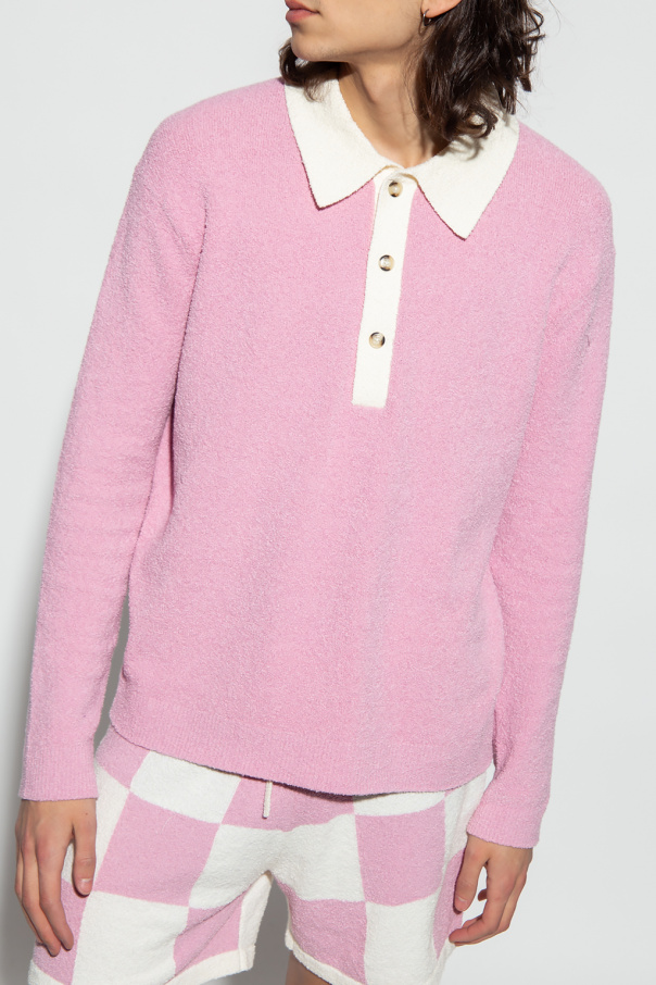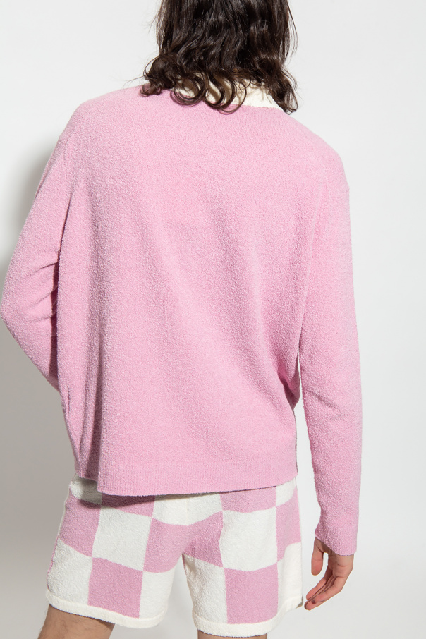 Pink and cream ‘Dante’ sweater from Nanushka. Made of cotton, this garment features button fastenings and ribbed trims at the hem and cuffs.