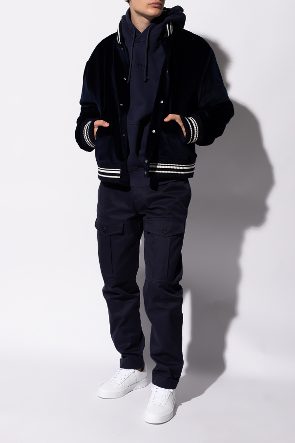 Navy jacket from 424. Crafted from cotton velvet, this garment features snap fastenings, two slip pockets and ribbed trims.