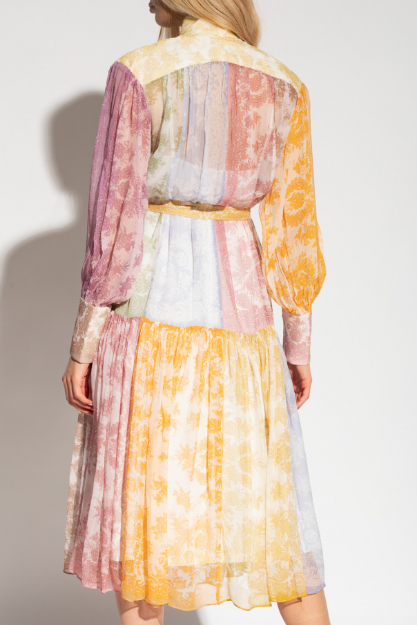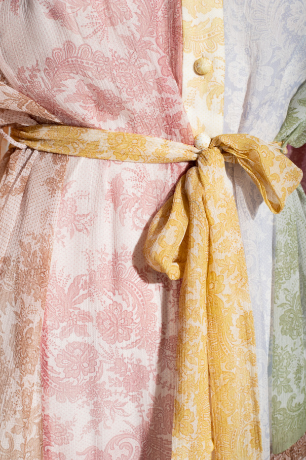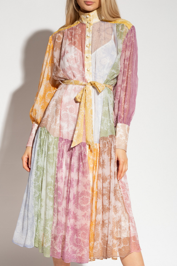 Multicolored ‘Dancer’ dress from Zimmermann. Made of silk, this design features button fastenings, waist belt, print, long sleeves with zips and cream slip dress with adjustable shoulder straps.