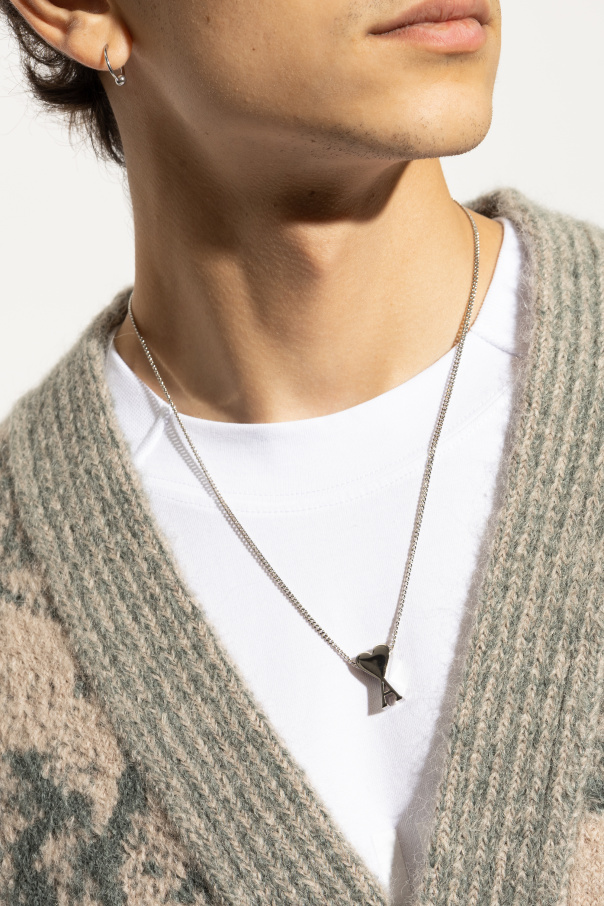 Introducing the AMI Logo Pendant Necklace, a distinguished piece from our exclusive collection. Crafted with the utmost precision, this necklace exudes sophistication and contemporary charm, perfect for any discerning fashion aficionado. The pendant showcases a unique X-shaped design with an embedded heart, symbolizing both elegance and affection. Made from high-quality silver-toned metal, this exquisite piece is designed to stand out while seamlessly complementing any attire. Emblazoned with the AMI logo, the pendant reflects the brand's dedication to style and authenticity. The necklace features a medium-length chain with adjustable links, ensuring a perfect fit for every wearer. Its lobster clasp closure offers both convenience and security. This unisex necklace is designed for both men and women, making it a versatile addition to any jewelry collection. Whether paired with casual wear or formal attire, the AMI Logo Pendant Necklace is sure to make a statement. Why Choose This Product? Unique Design: Distinctive X-shaped pendant with an embedded heart. High-Quality Material: Crafted from premium silver-toned metal. Adjustable Fit: Medium-length chain with adjustable links for a perfect fit. Unisex Appeal: Suitable for both men and women. Brand Authenticity: Features the AMI logo, reflecting the brand's prestigious heritage.