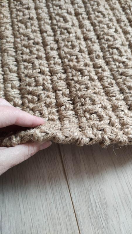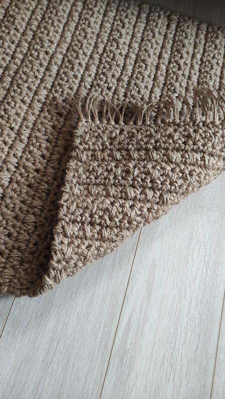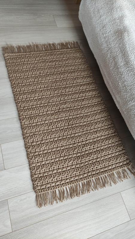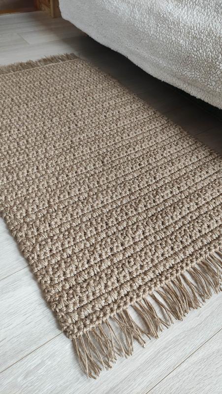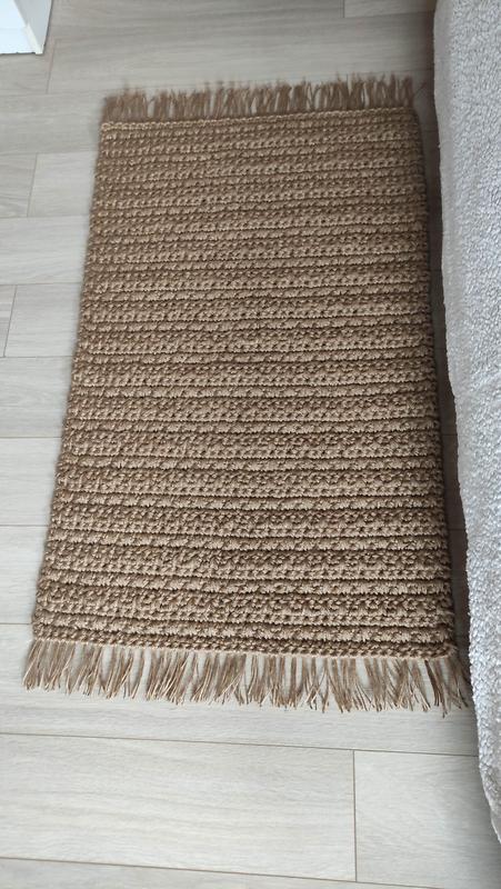 Натуральний килим у язаний гачком. . Матеріал: джут. Розміри: довжина-105см. без кистей; кисті - 8см; ширина - 64см; товщина-0,8 див. (Розміри можуть не збігатися, з урахуванням ручної роботи).