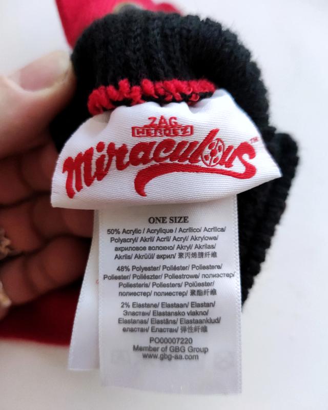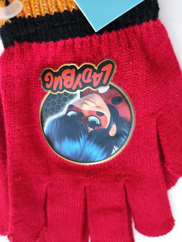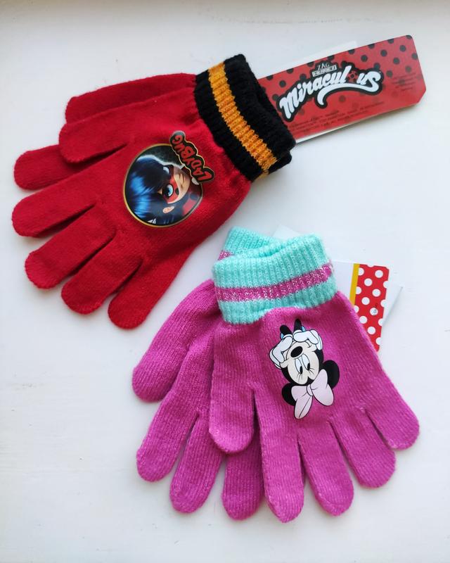 Яркие красные вязанные перчатки на девочку с Леди Баг. Есть ещё розовые с Мини Маус.