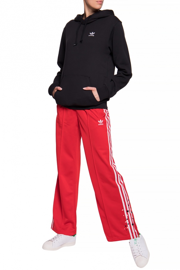 Black hooded sweatshirt from ADIDAS Originals. Made of cotton. Drawstring hood. Decorated with a white logo embroidery. Slip pocket on the front. Ribbed hem and cuffs.