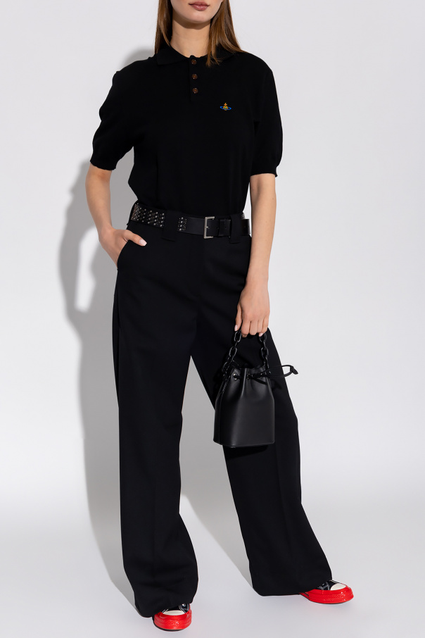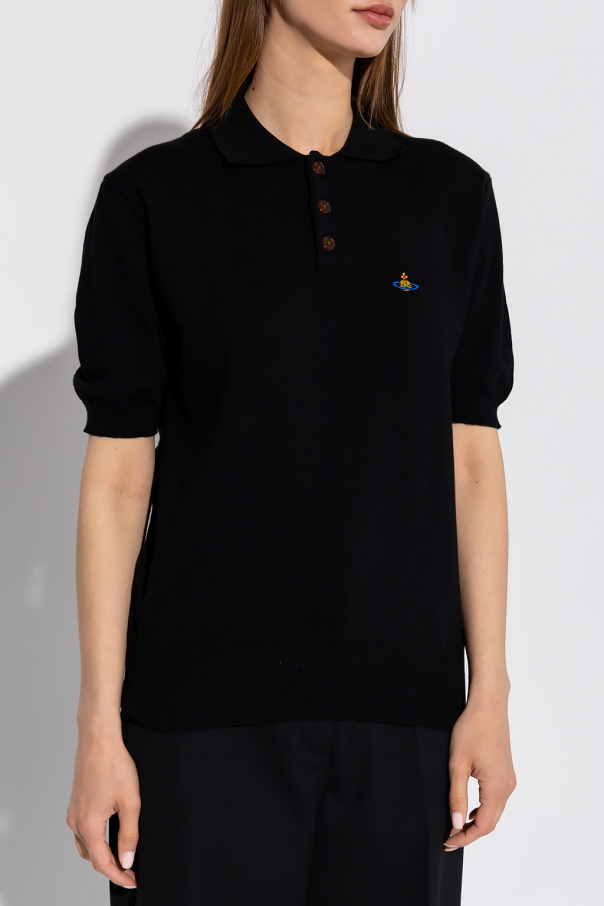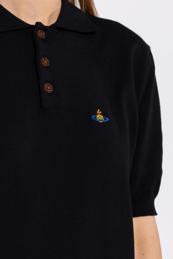 Black polo shirt from Vivienne Westwood. Crafted from cotton, this short sleeve design features button fastenings, multicolored logo embroidery and ribbed trims at the hem and cuffs.