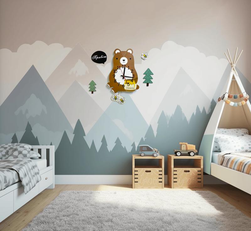 Детские часы на стену Медвежонок с дополнительными элементами - отличный набор