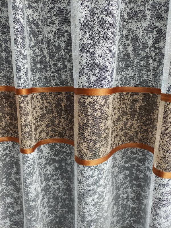 Тюль белого или кремового( на ваш выбор) с вставками бежевого цвета.