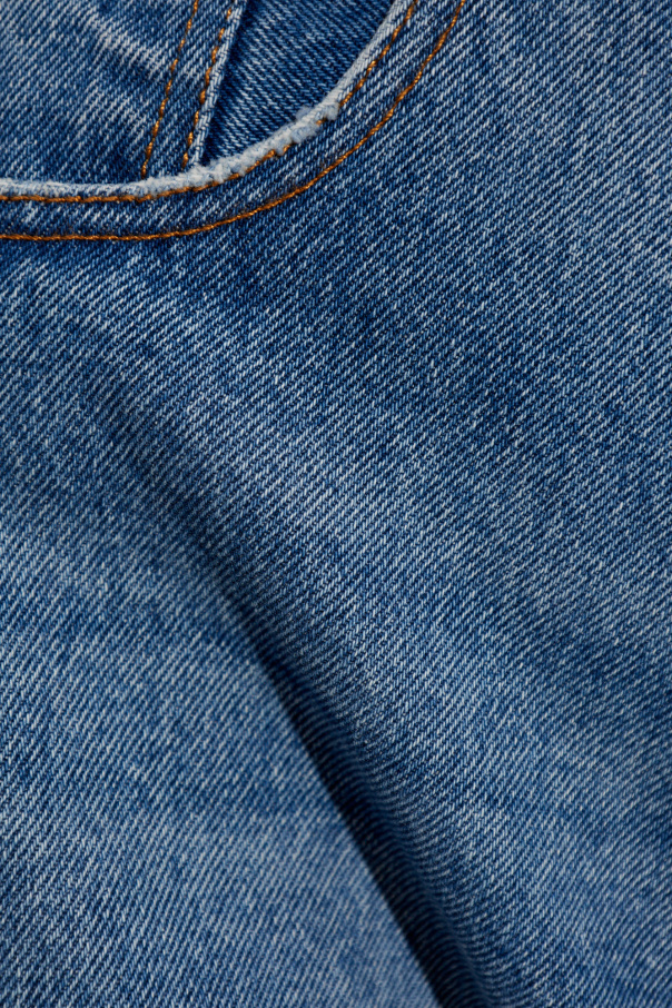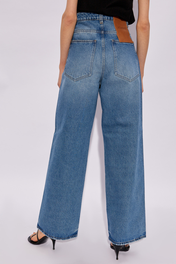 Blue jeans from Jacquemus. Falling with wide legs, this pair features button fastenings, classic five-slip pockets and a brown patch with an embossed logo on the back.