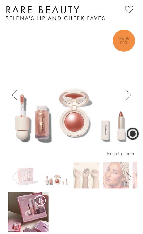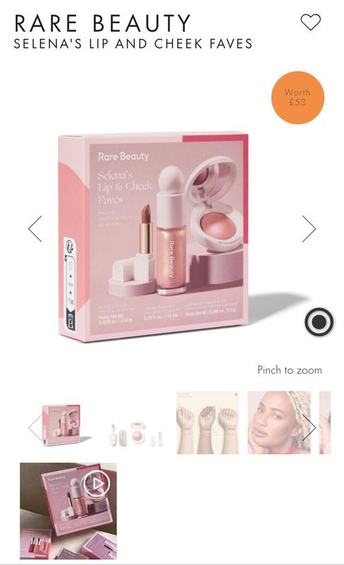 Створіть свіжий, рожевий образ за допомогою Rare Beauty Selena's Lip & Cheek Faves, набору, який включає повнорозмірні рум’яна Soft Pinch Luminous Powder Blush, повнорозмірний рідкий люмінайзер Positive Light і міні-помаду Kind Words. Цей набір макіяжу включає лімітовані відтінки рум’ян і помади.