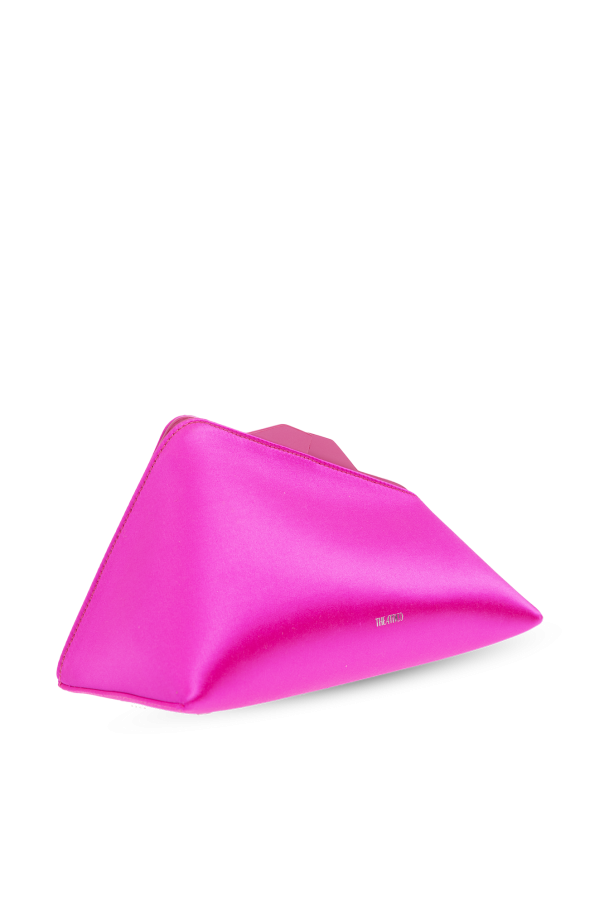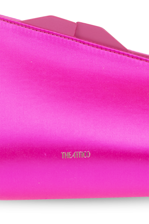 Neon pink ‘8:30 PM’ clutch from The Attico. Made of satin, this design fastens via a snap and showcases the brand's logo on the front, silver-tone metal hardware and one internal compartment with a card slot.