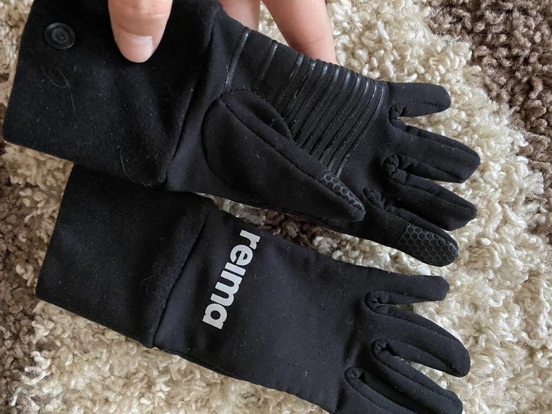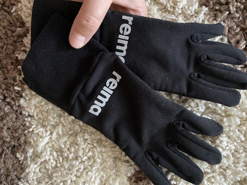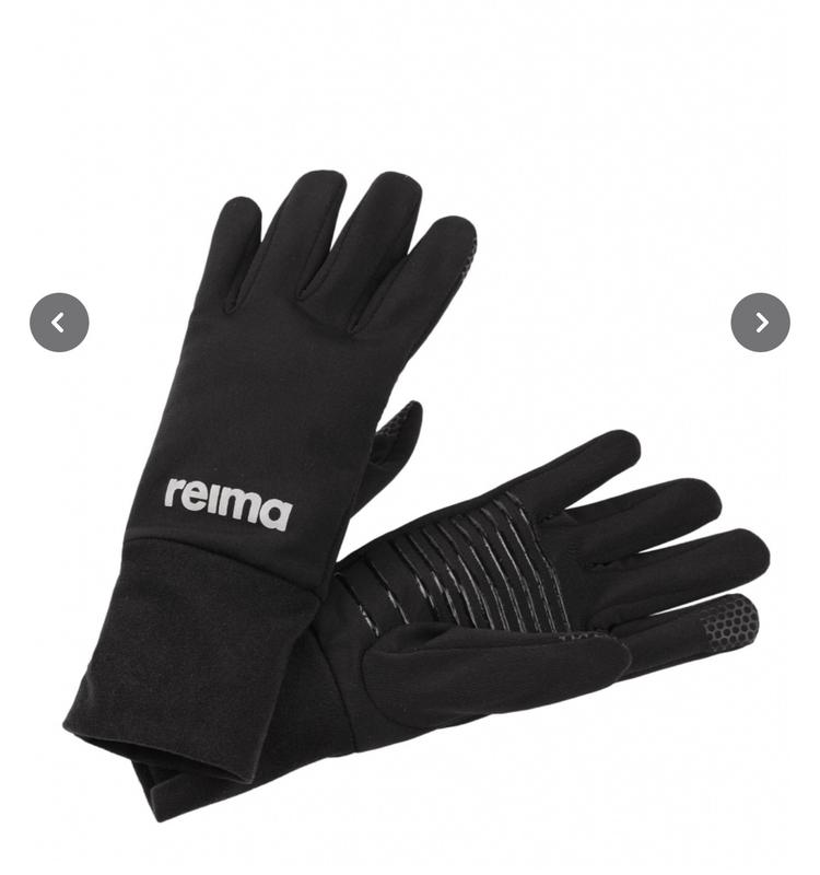 Перчатки Reima Zinkenite без подкладки. Силиконовый принт, предотвращающий скольжение. Светоотражающая надпись рейма. Подходит для использования touch screen устройств, не снимая перчатокСостояние: Очень хорошееЦвет:- Чёрный