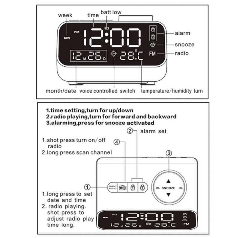 Часы настольные с радио, двумя будильниками, календарем (число и месяц), так