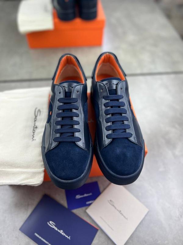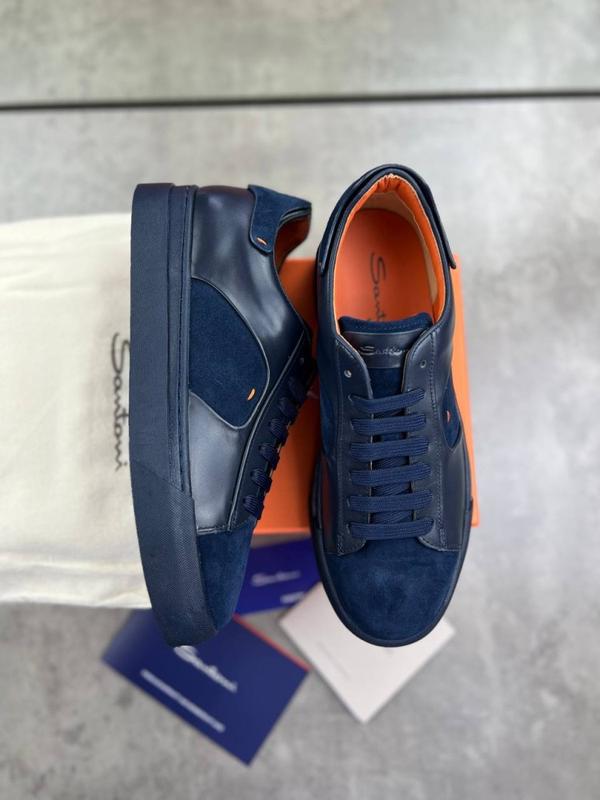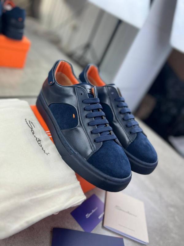 Оздоблення зі шкіри темно-синього кольору зі вставками замші. У комплекті