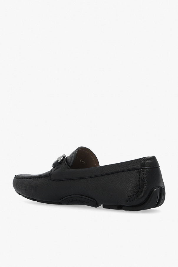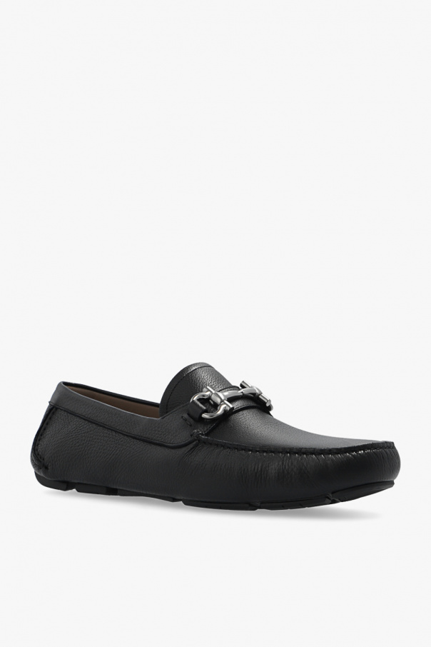 Black ‘Parigi’ moccasins from FERRAGAMO. Made of calf leather, this pair is complete with the label’s signature Gancini appliqué in silver-tone and black rubber sole.