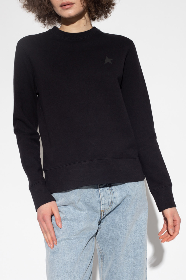 Black crewneck sweatshirt from Golden Goose. Made of cotton jersey, this style showcases a tonal logo on the front and ribbed trims on the collar, bottom hem and long sleeves.