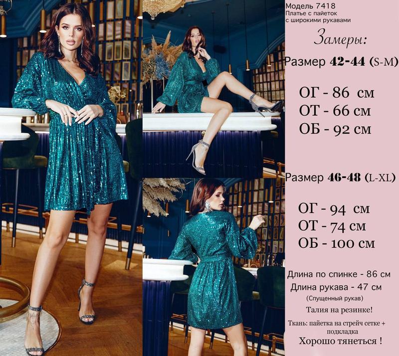 Цена: 1099 грн🔥💎 Мерцающие платья из паеток с объемными рукавами. Лиф имеет V-образный вырез запаха. Идеальный вариант для празднования корпоративов Нового года. Талия на резинке. Пояс в комплекте.