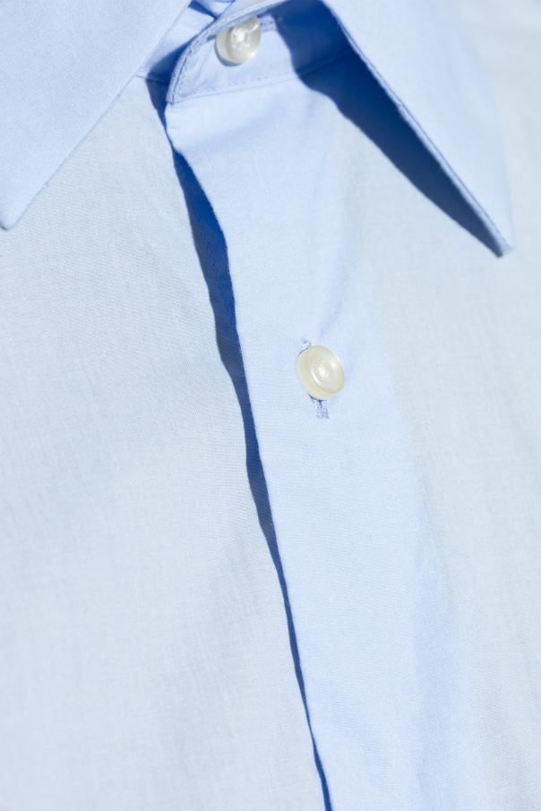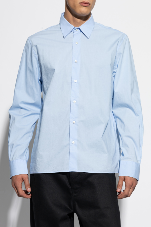 Introducing the Organic Cotton Shirt by Officine Generale, an epitome of refined elegance and sustainable fashion. Crafted from the finest organic cotton, this shirt ensures unparalleled comfort and an eco-friendly choice for the discerning gentleman. In a timeless blue hue, this shirt features a classic formal cut with long sleeves, perfect for any sophisticated occasion. The traditional straight collar and white button placket exude a polished and distinguished look, while the buttoned cuffs add a touch of meticulous craftsmanship. Each detail, from the carefully placed buttons to the immaculate finishing, speaks volumes of its superior quality. The shirt's simplicity is its strength, presenting a clean and versatile silhouette free from extraneous embellishments or visible logos. Why Choose This Product? Elegant blue color for a versatile, timeless look. Made from 100% organic cotton, ensuring comfort and sustainability. Classic formal design with a traditional collar and buttoned cuffs. High-quality finish and detailing for a sophisticated appearance. Perfect for formal settings, effortlessly pairing with coats and trousers.