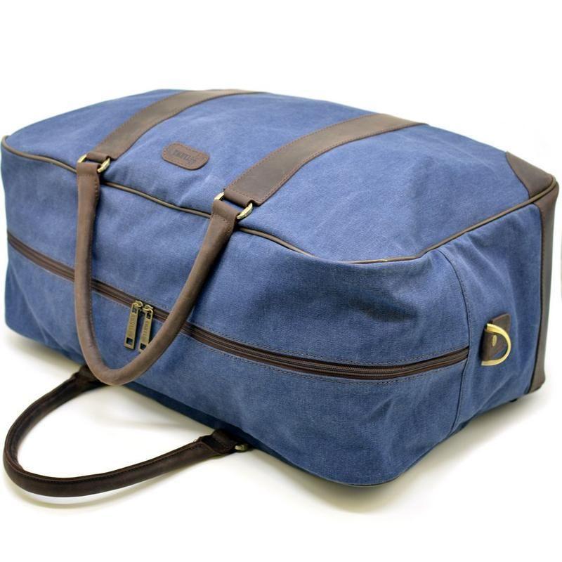 Стильная дорожная сумка из ткани канвас с элементами натуральной кожи Crazy Horse RK-6827-4lx, от украинского бренда TARWA. Аксессуар универсальный, подойдет мужчинам и женщинам, выполнен из качественных материалов и имеет мягкую структуру. А за счет интересного сочетания ткани Канвас и натуральной кожи Crazy Horse, сумка смотрится дорого. На лицевой стороне присутствует логотип бренда TARWA. Cумка имеет одно отделение, в котором можно разместить очень много вещей. Внутри имеются два больших открытых кармана и один врезной с молнией для мелких предметов, документов и телефонов. Ручки отшиты из кожи, что придаст им долговечность в использовании. Застегивается на молнию с 2-мя бегунками. Дно сумки оснащено пятью специальными сферическими ножками. В комплекте есть длинный регулируемый текстильный ремень.