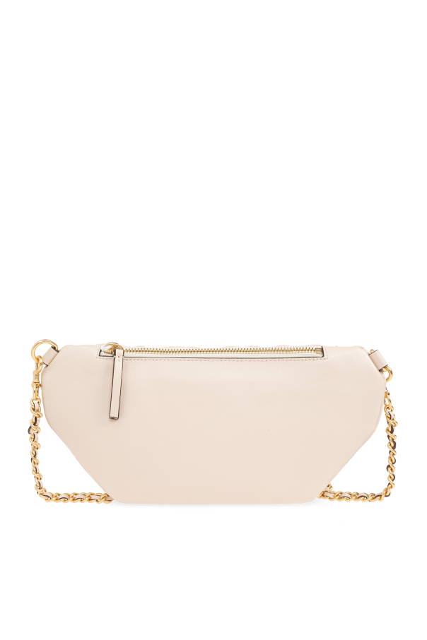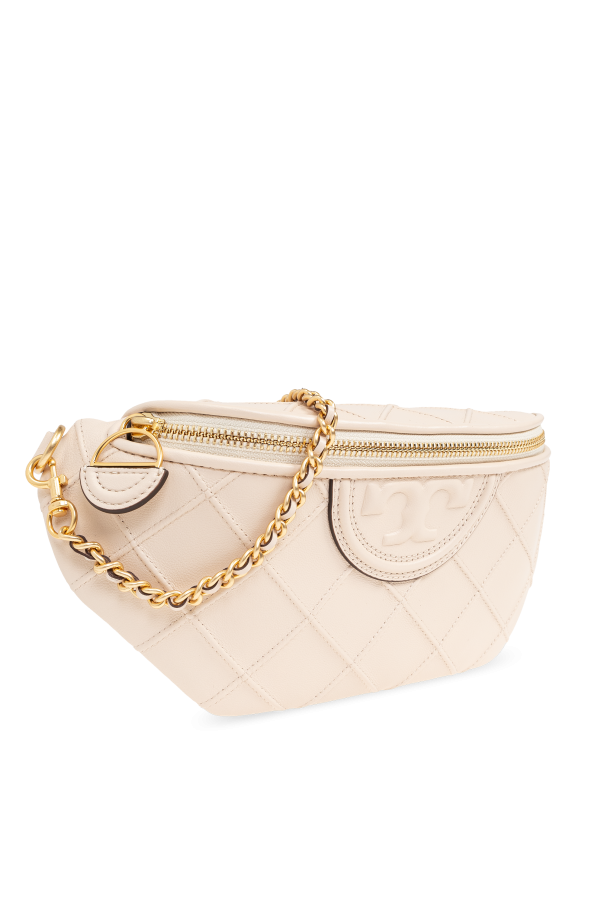 Introducing the `Fleming Soft` Belt Bag by the esteemed designer Tory Burch, a paragon of sophistication and functionality. Crafted with the utmost attention to detail, this exclusive accessory is designed to elevate your everyday ensemble. The bag boasts a semi-circular silhouette with softly rounded edges, reminiscent of a refined satchet. Its front is adorned with a quilted diamond pattern, lending an air of elegance and sophistication. The cream-pink hue dominates, offering a versatile and opulent aesthetic that harmonizes beautifully with neutral attire. Made from 100% high-quality leather, with an interior lined in a durable fabric, this belt bag embodies luxury. The front features the designer's initials or logo, subtly embossed, signifying its prestigious origin. Gold-tone hardware, including a zip closure and a shoulder chain, accentuates its exclusive character. Functionality is not forsaken for form; the bag features a secure gold zip-top closure and an adjustable strap, ensuring personalization and comfort for the wearer. Why Purchase This Product? Elegant and sophisticated design, perfect for elevating everyday wear. Crafted from premium leather, ensuring durability and a luxurious feel. Exquisite details such as the quilted texture and gold-tone hardware. Versatile cream-pink color that complements a wide range of outfits. Adjustable strap and secure closure for convenience and safety.