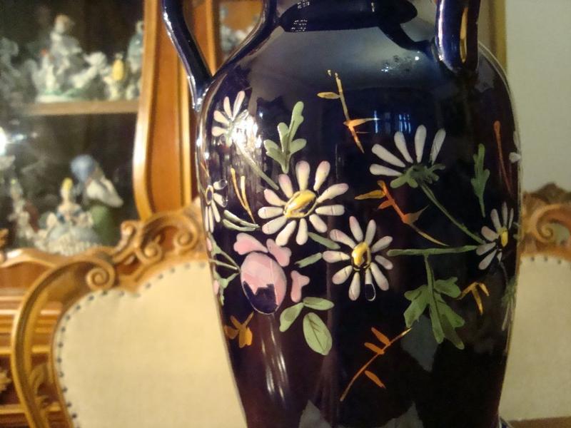 КРАСИВАЯ ОРИГИНАЛЬНАЯ ВАЗА. РУЧНАЯ РОСПИСЬ ПО КОБАЛЬТУ. БЕЗ СКОЛОВ И ТРЕЩИН. ВЫСОТА 39 СМ.