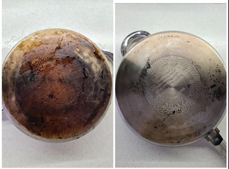 СКОВОРОДКИ/КАСТРЮЛИ Для жира, нагара на дне разводим 3-5 ложек на литр кипятка и ставим замачиваться на полчаса или большеКаждые 10 минут помогаем металлическим скребкомВнутри кастрюли можно развести гранулы и кинуть туда всякой кухонной мелочевки. И кастрюля очистится и за одно ложечки, ножи и т.д.