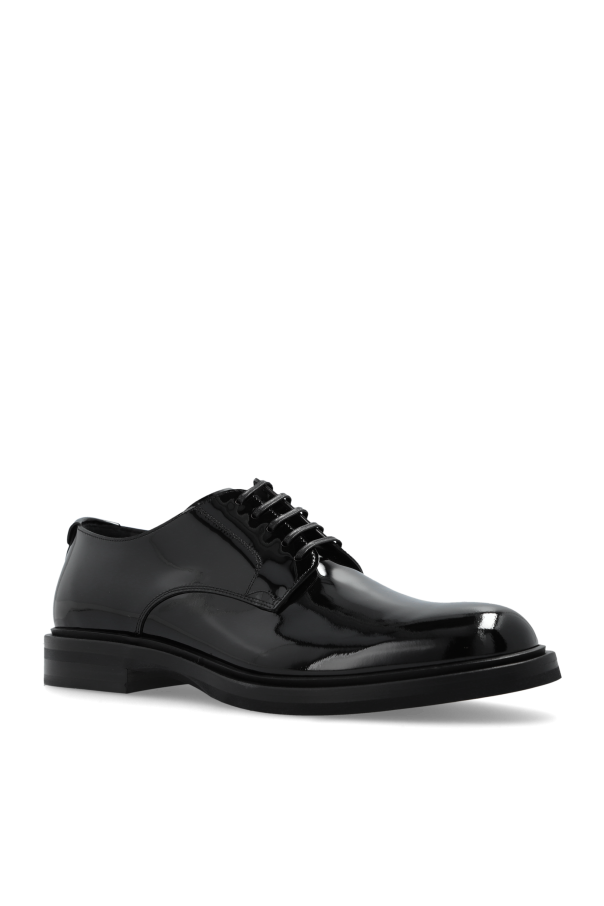 Introducing the epitome of sophistication and timeless elegance: Dolce & Gabbana's Leather Shoes. Crafted with meticulous attention to detail, these luxurious shoes are designed for the modern gentleman who appreciates the finer things in life. Featuring a classic, elegant shape with a rounded toe, these shoes exude a stylish and timeless appeal. The smooth, unadorned pattern enhances their refined character, making them the perfect choice for formal occasions. The exterior is made from glossy, patent leather, providing a lustrous finish that speaks volumes of luxury. These shoes come with traditional black laces, ensuring a secure and elegant fit. The interior showcases the hallmark of quality with a visible insole inscribed "DOLCE & GABBANA MADE IN ITALY," a testament to their Italian craftsmanship. The rear of the shoe is slightly elevated, offering additional comfort for prolonged wear, while the uniformly black sole harmonizes seamlessly with the overall design. Ideal for pairing with a sleek suit, these shoes are the quintessential choice for formal events and special occasions. The dominant black color adds to their versatile elegance, making them a must-have in any refined wardrobe. Why Buy This Product? Timeless Design: Classic shape with a rounded toe for a stylish look. Luxurious Material: Made from high-quality, glossy patent leather. Comfort and Fit: Slightly elevated heel for added comfort. Craftsmanship: Authentic Italian design by Dolce & Gabbana. Versatile Elegance: Perfect for formal and special occasions.