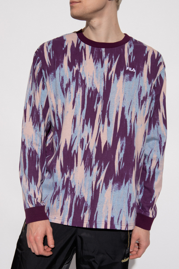 Purple, beige and grey T-shirt from Fila. Made of cotton, this long sleeve design is enriched by a decorative pattern, embroidered logo in white and ribbed trims.