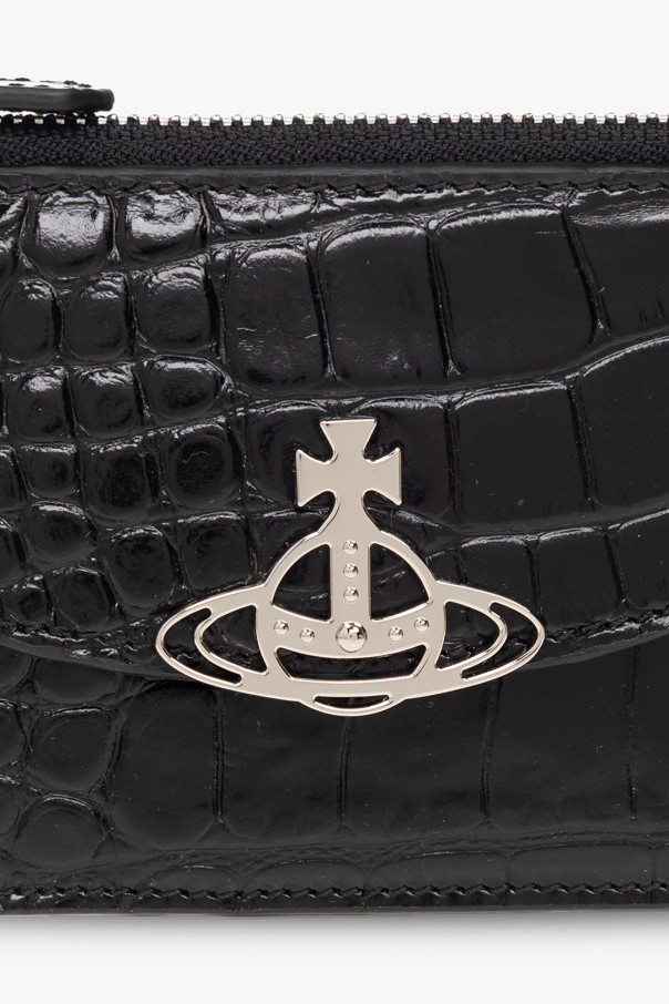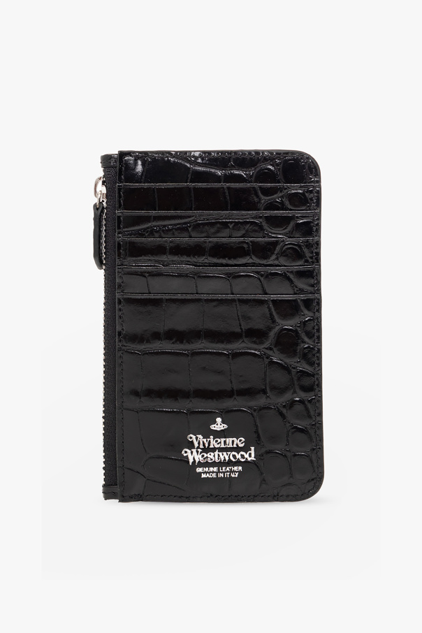 Black card holder from Vivienne Westwood. Made of cow leather, this item features a logo detail, five card slots, flap pocket and zipped internal compartment.