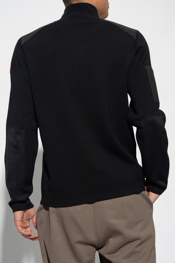Black ‘Stormont’ turtleneck sweater from Canada Goose. Made of wool, this garment features a zip fastening and long sleeves with a zip pocket and a logo patch.