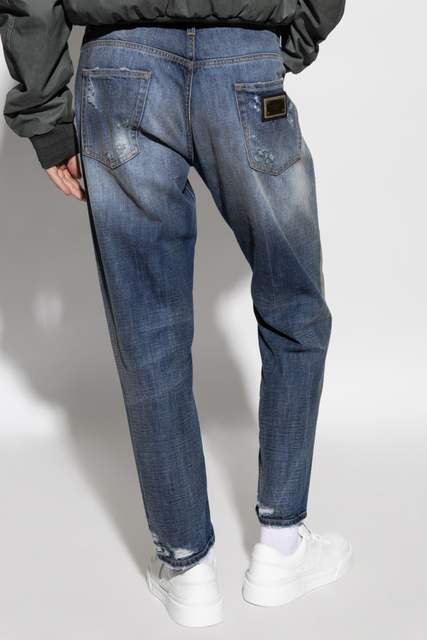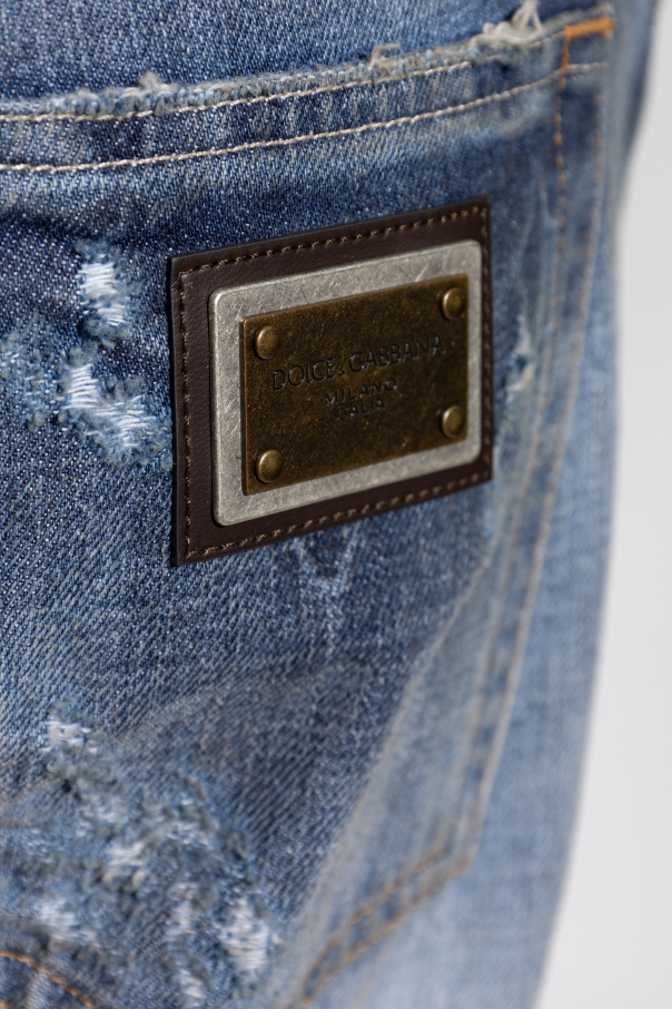 Introducing the Exclusive Dolce & Gabbana Signature Jeans Experience the epitome of sartorial elegance with our Dolce & Gabbana Jeans. Meticulously crafted from non-stretch denim, these jeans boast a classic straight cut with subtly tapered legs, embodying both timeless style and contemporary sophistication. The distinctive vintage aesthetic is achieved through artfully placed abrasions and faded areas, lending a worn-in, yet refined look. The dominant blue hue, interspersed with lighter and darker tones, enhances the jeans' unique character. Impeccable attention to detail is evident in the metallic logo patch on the back pocket, secured with rivets for an enduring statement of luxury. The jeans feature a traditional button and zipper closure, complemented by five thoughtfully designed pockets for practicality and style. Why Choose This Product? Timeless Design: Classic straight cut with modern tapered legs. Premium Quality: Made from durable, non-stretch denim. Distinctive Style: Unique vintage look with strategically placed wear and fade. Iconic Branding: Features the signature Dolce & Gabbana metallic logo patch. Functional Elegance: Five-pocket design with button and zipper closure.