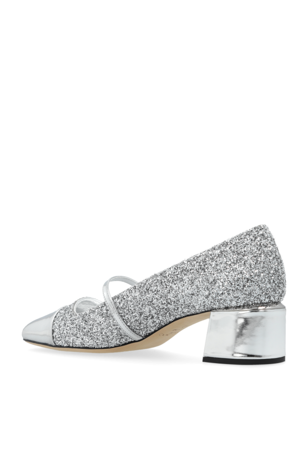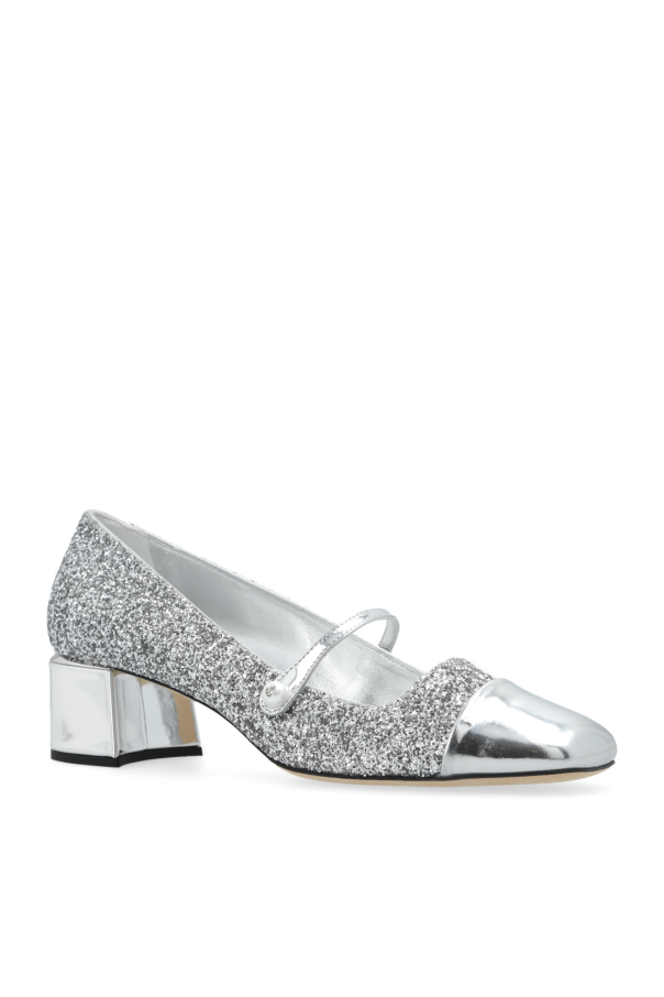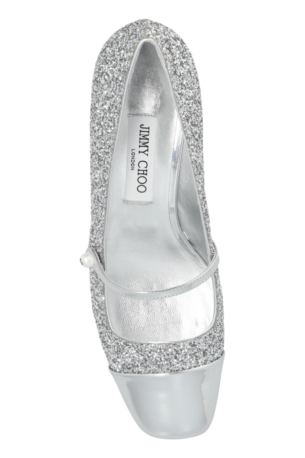 Elisa Heels Introducing the exquisite Elisa Heels, a quintessential pair from the renowned house of Jimmy Choo. These heels boast a classic "mary jane" silhouette, complemented by a distinctive strap across the instep that exudes elegance and subtlety. The medium-height, square-shaped heel not only ensures stability but also provides unmatched comfort. The upper of the shoe is adorned with shimmering silver glitter, making it the perfect choice for special occasions, while the toe and heel are crafted from smooth, mirrored silver material, adding a modern touch. A small decorative button secures the strap, a hallmark of this model. Inside, the shoe is lined with soft, silver leather, promising a luxurious wearing experience. The insole proudly displays the designer's logo, "JIMMY CHOO LONDON". These heels are not just footwear; they are a statement of luxury and sophistication, ideal for evening outings and special events. The beige leather sole and glitter finish further enhance their exclusivity. Why Purchase This Product? Elegant "mary jane" design with a distinctive strap. Medium-height, square-shaped heel for stability and comfort. Shimmering silver glitter upper for a luxurious look. Soft, silver leather lining for ultimate comfort. Signature "JIMMY CHOO LONDON" logo on the insole. Perfect for evening outings and special occasions.