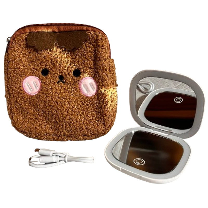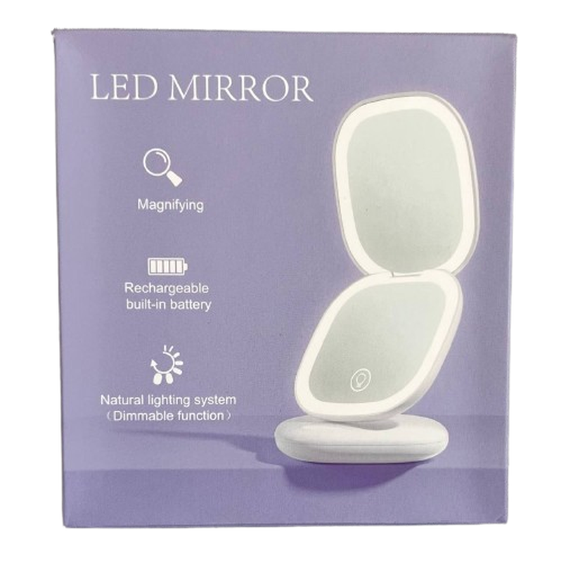 Карманное зеркало имеет двухстороннее зеркало с LED подсветкой. Одно обычное, второе с увеличением.