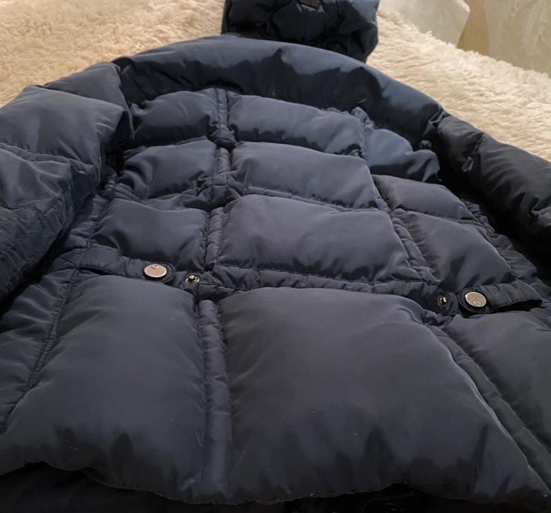 Синего цвета, тёплая и мягкая, в идеальном состоянии, если (не считать разные кнопочки на одном кармане).