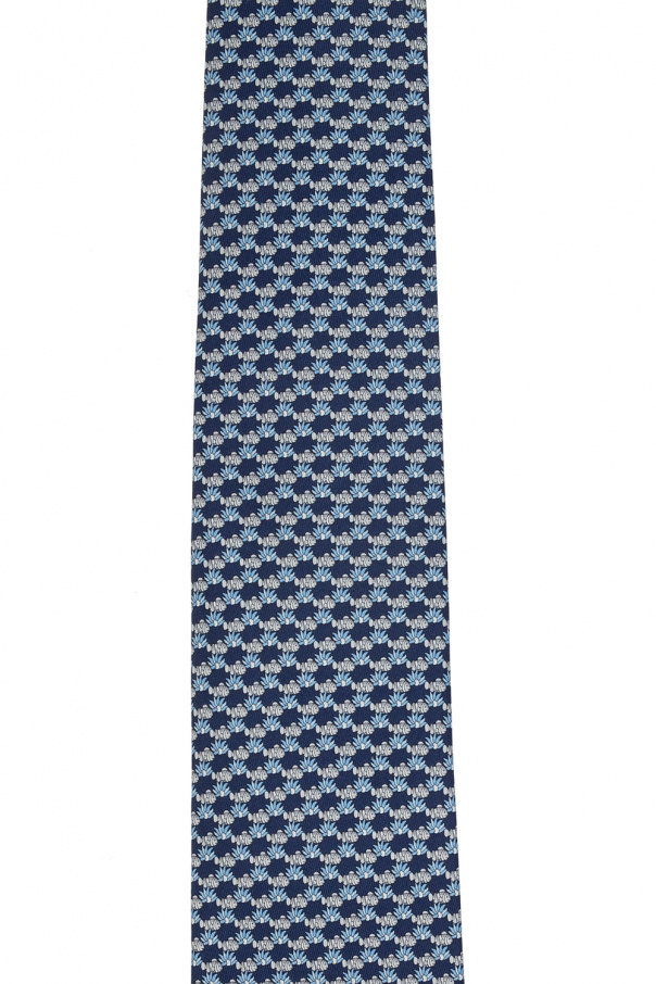 Navy blue tie from Salvatore Ferragamo. Made of silk, this item showcases a blue, grey and white animal motif.