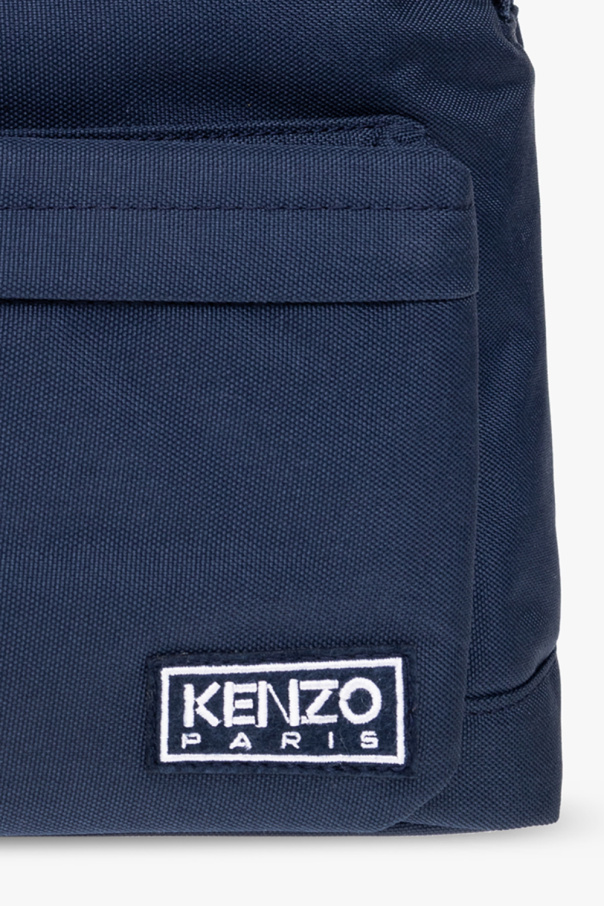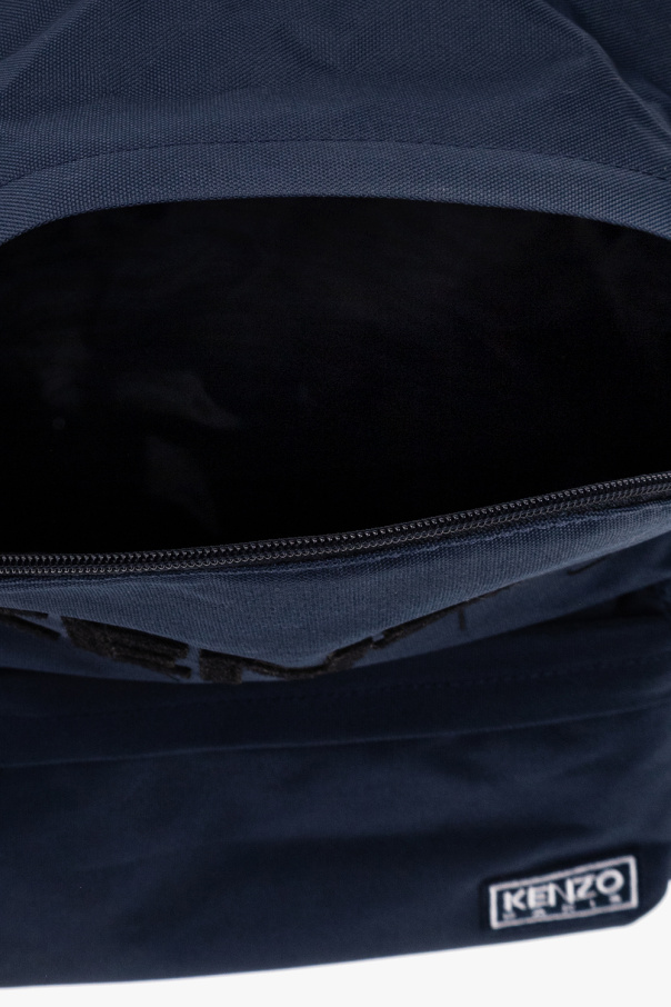 Dark blue backpack from Kenzo Kids. Fastened with a zip, this model features a logo pattern, front zip pocket, half-round handle, adjustable shoulder straps, one internal compartment and black metal hardware.