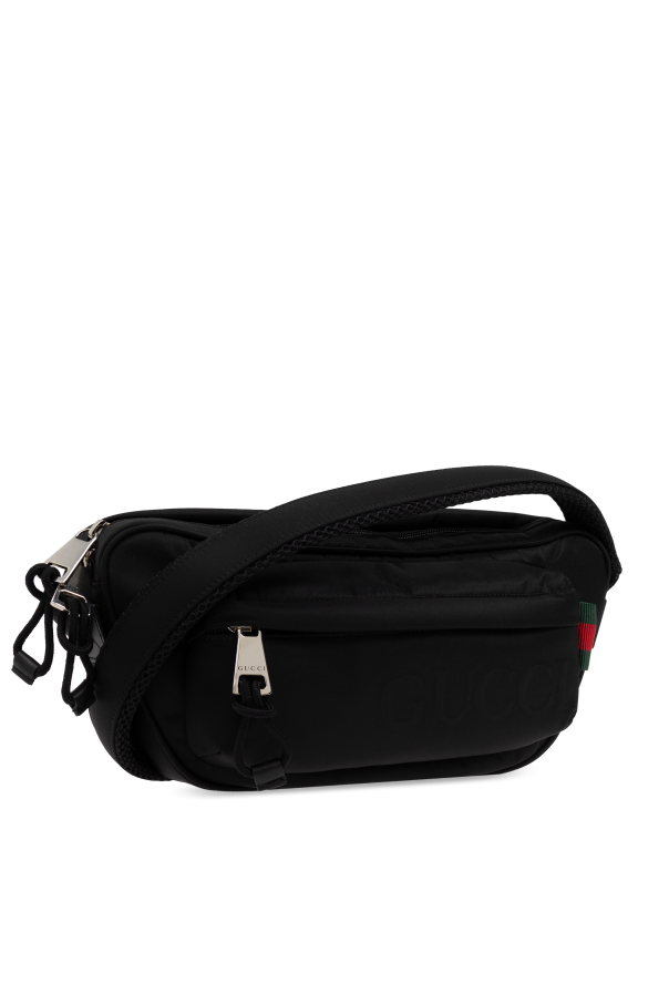 Introducing the Gucci Shoulder Bag, an epitome of sophistication and practicality. Crafted from premium black nylon with a matte finish, this rectangular bag with slightly rounded edges exudes understated elegance. The front proudly features the embossed Gucci logo, a testament to its luxury heritage. Inside, the bag is lined with dark fabric, providing a stark contrast to the sleek exterior. The adjustable shoulder strap, also in black, ensures comfort and versatility. The green-and-red striped detailing on the front pocket is a signature touch from Gucci, adding a pop of color and an iconic flair. Functionality is not compromised for style, as the bag boasts multiple zippered pockets and compartments, making it ideal for everyday use. The silver-toned metal zipper elements and meticulously crafted stitching further highlight the bag's high-quality craftsmanship. Why Choose This Product? Exquisite design by Gucci, a leader in luxury fashion. Crafted from durable, high-quality black nylon. Iconic green-and-red Gucci detailing. Multiple zippered pockets for enhanced functionality. Adjustable shoulder strap for comfort and versatility. Embossed Gucci logo for a touch of elegance.