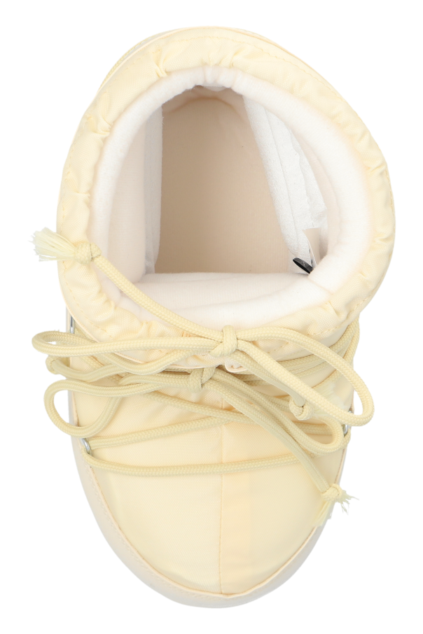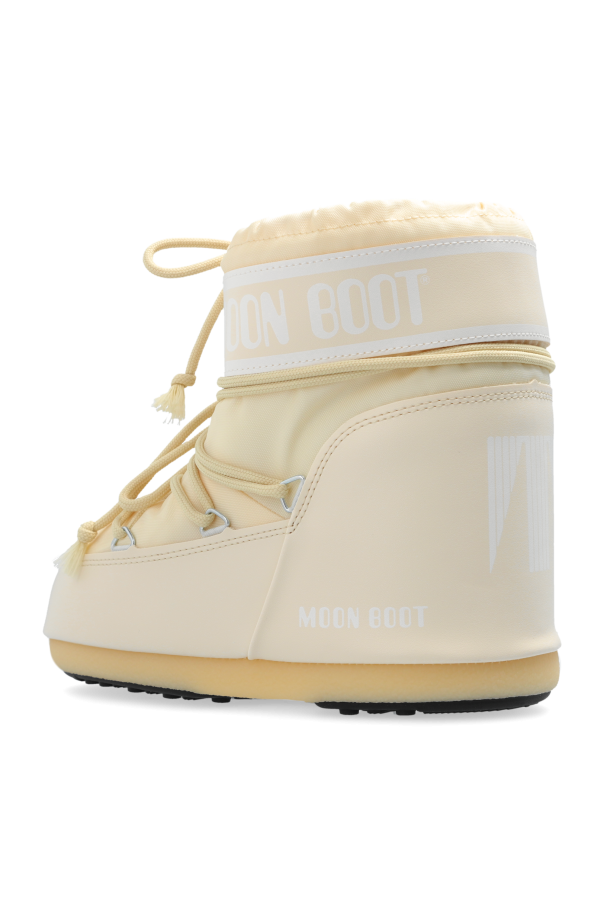 Introducing the epitome of winter elegance: the Icon Low Nylon Snow Boots by Moon Boot. These boots, part of an exclusive collection, blend impeccable functionality with refined aesthetics, making them the quintessential choice for discerning individuals. Crafted from durable nylon, the Icon Low Nylon boots ensure unparalleled water resistance and robustness. The interior is lined with a soft material, offering unmatched warmth and comfort, essential for harsh winter conditions. The distinctive rounded shape with a low shaft enhances both comfort and practicality. In an exquisite cream hue, these snow boots exude a sophisticated and versatile appeal. The cream-colored laces serve both practical and decorative purposes, while the striking "MOON BOOT" logo on the side and rear adds a touch of exclusivity. The thick, rubber, anti-slip soles guarantee superior traction on snow and ice, making them indispensable for winter adventures. Meticulously finished with robust stitching, these boots promise exceptional durability and flexibility, ensuring comfort during prolonged wear. Why Choose This Product? Elegant Design: Modern, minimalist aesthetic suitable for both sporty and casual looks. Superior Comfort: Soft interior lining for warmth and comfort. Durability: High-quality nylon material and solid construction. Excellent Traction: Thick, rubber, anti-slip soles for safe movement on snow and ice. Exclusive Branding: Prominent "MOON BOOT" logo signifying luxury and style.