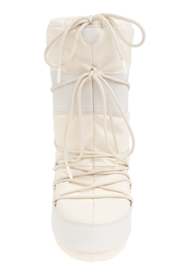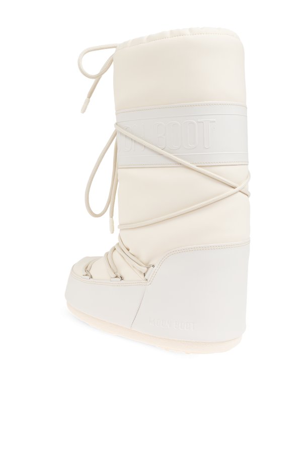 Introducing the Icon Rubber snow boots, an exquisite addition to any winter wardrobe. These WOMEN'S SNOW BOOTS embody the perfect blend of functionality and style, ensuring you remain elegant and comfortable regardless of the weather. The Icon Rubber boasts a classic high design that extends above the ankle, providing superior insulation and protection. The rounded toe and robust, thick sole ensure excellent insulation from cold ground, while the intricate lacing adds a touch of sophistication and stability. Crafted from smooth, synthetic material, these boots are both moisture-resistant and easy to clean. The high-quality rubber sole offers exceptional grip on slippery surfaces, making them ideal for challenging winter conditions. Adorned with a wide strap embossed with the MOON BOOT logo at the top and another logo at the heel, these boots are a testament to the renowned brand's commitment to quality and style. The long laces crisscrossing the front of the boot add a distinctive and fashionable flair. The elegant cream color of these boots ensures they will complement a wide range of winter ensembles, adding a touch of luxury to your cold-weather outfits. Why Buy These Boots? Classic high design for superior insulation and protection. Moisture-resistant and easy-to-clean synthetic material. Robust rubber sole for excellent grip on slippery surfaces. Distinctive lacing and embossed logos for a unique and stylish look. Elegant cream color that complements various winter styles.