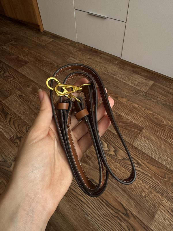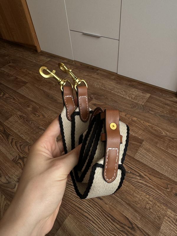 В комплекті два ремінця через плече - тонкий коричневий та ширший тканинний (до чорної чорні), також є відділення на замочку, яке можна використовувати окремо, або прикріпити всередині.