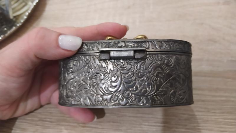Позолота сверху на крышке шкатулки и на основании ( часть позолоты стерлась).Просто идеальный подарок для хранения мелких маленьких украшений или сувениров.