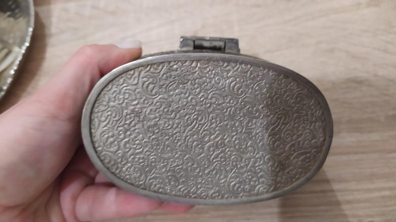 Винтажная изысканная шкатулка для украшений из белого металла и позолоты.