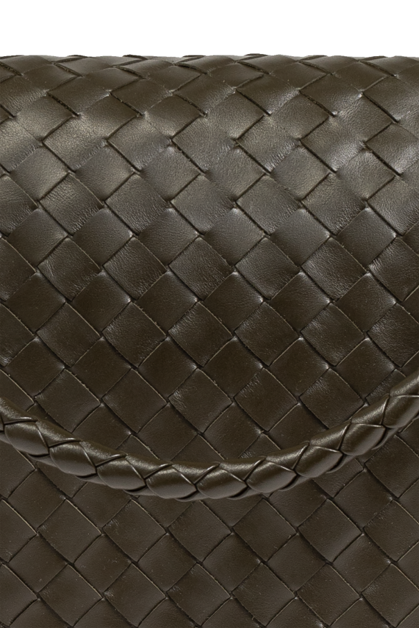 Introducing the 'Swing' Shoulder Bag from the exclusive collection by Bottega Veneta. This exquisite piece boasts a rectangular shape with rounded corners, adorned with the iconic 'intrecciato' weave pattern, a hallmark of luxury handbags. Meticulously crafted from high-quality calfskin leather, the bag exudes sophistication through its deep olive-green hue. The adjustable shoulder strap, also made from the same premium leather, ensures a perfect fit for your individual needs, while the braided handle adds a decorative touch. The interior, lined with soft fabric, features a secure zip closure and includes a compartment, a zippered pocket, and two slip pockets, offering both style and practicality. Although the designer's logo is not prominently displayed, the superior craftsmanship and design are unmistakably Bottega Veneta. Why Choose This Product? Elegant olive-green color for a refined aesthetic Iconic 'intrecciato' weave pattern Adjustable leather shoulder strap for personalized comfort Secure interior with multiple pockets for organization Exclusive design by Bottega Veneta